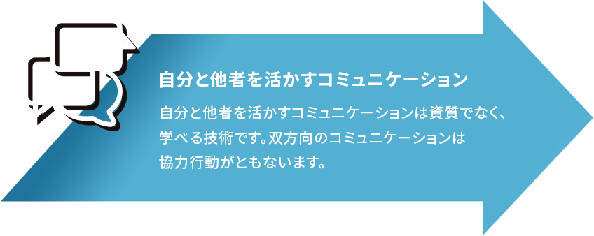 自分と他者を活かすコミュニケーションは資質でなく、学べる技術です。双方向のコミュニケーションは協力行動がともないます。